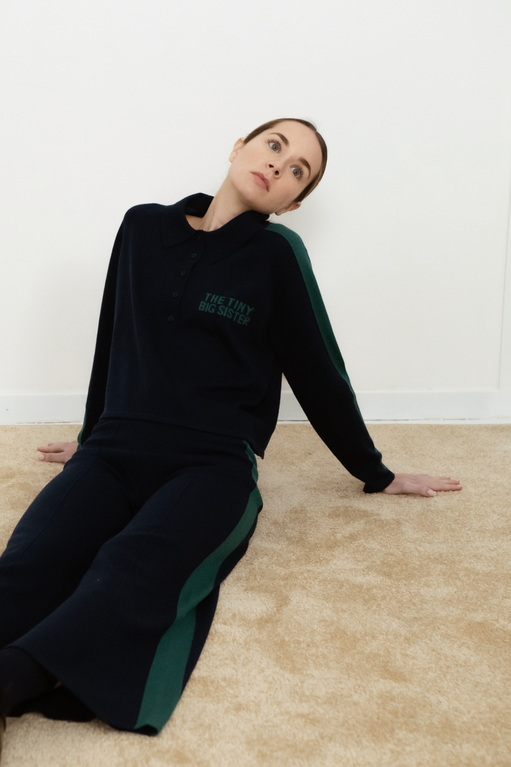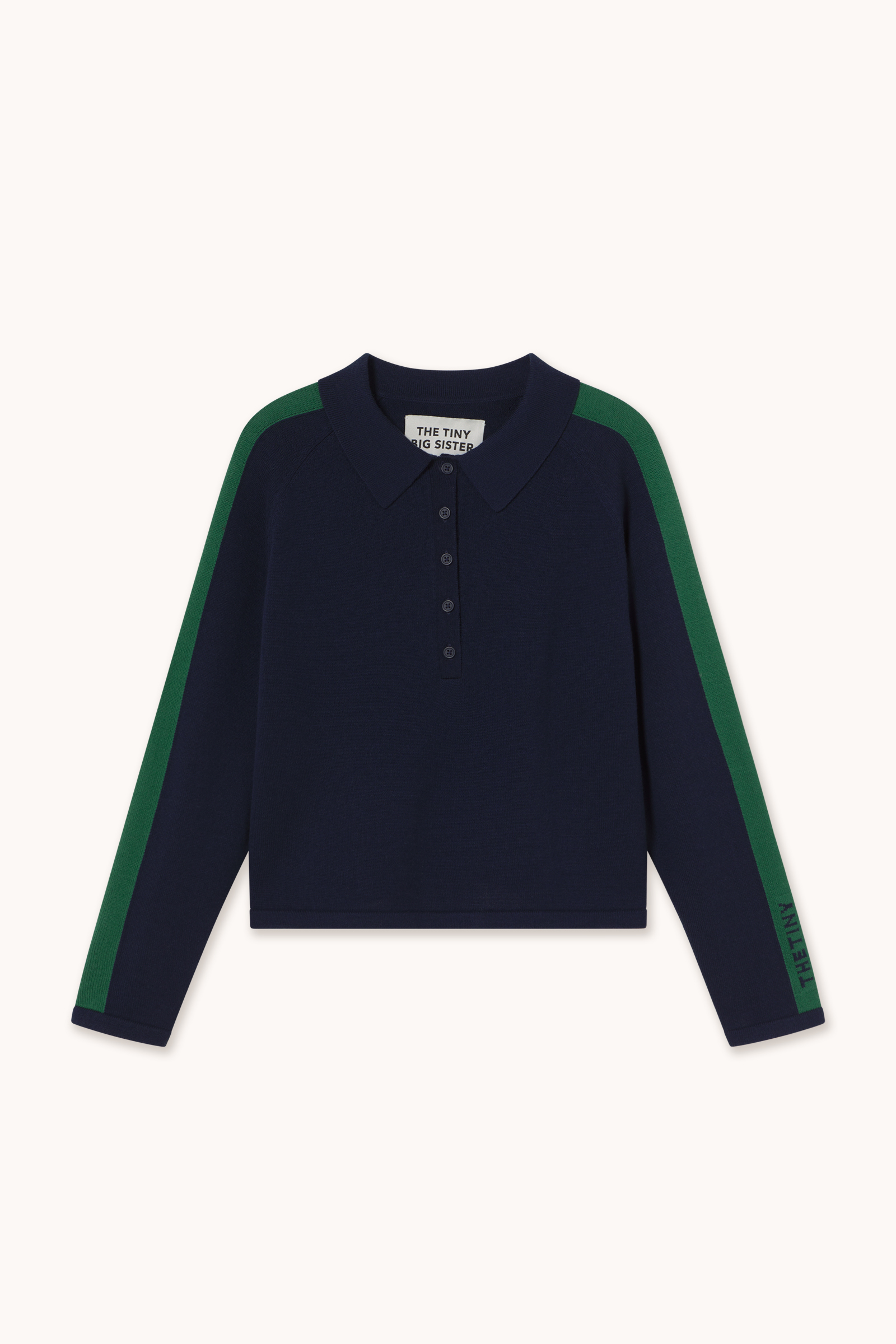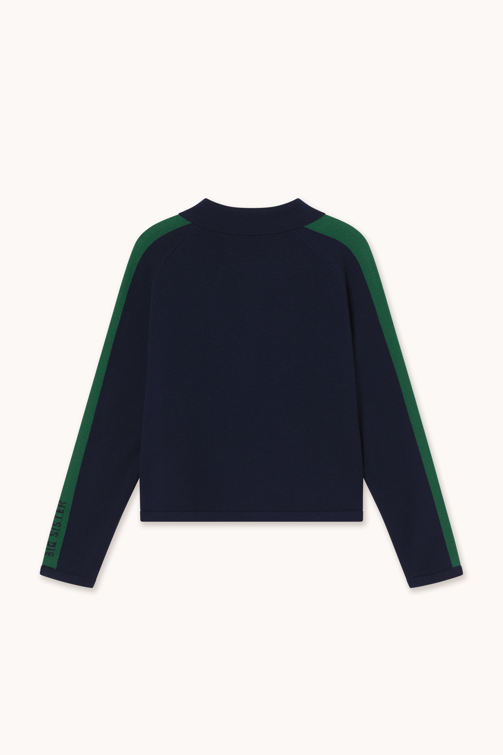 Knitted from extrafine merino wool in a deep navy base, this polo sweater features bottle green stripes along the sleeves for a sophisticated, subtly sporty look. Finished with a classic collar and ribbed trims. Pair with the matching trousers for a coordinated set.