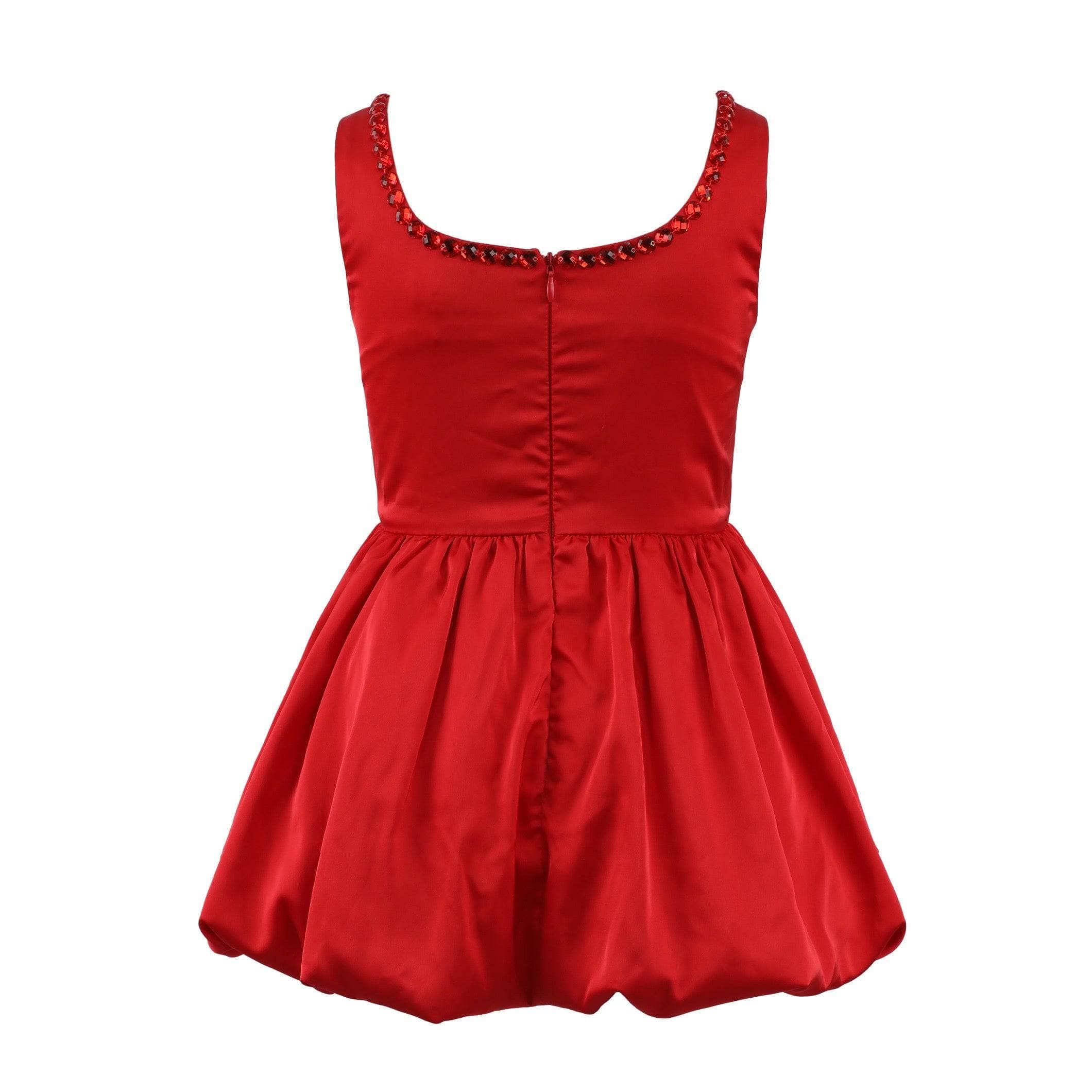- Features a voluminous bubble hem that adds a playful and stylish silhouette.