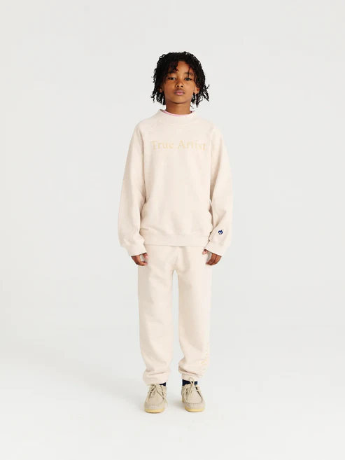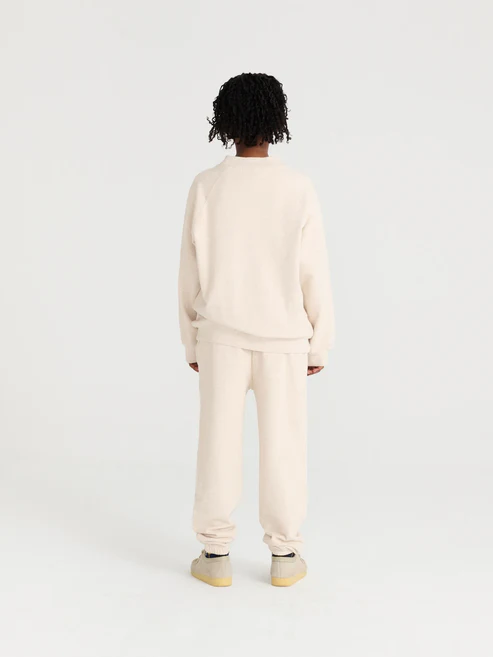 Sweatpants nº05 in Melange Cream are made of 100% organic cotton and 2% elastan fleece and have our logo printed on the leg. These iconic sweatpants are designed with elastic adjustable waistband, relaxed crotch and slash pockets. They have a relaxed fit. Made in Portugal.