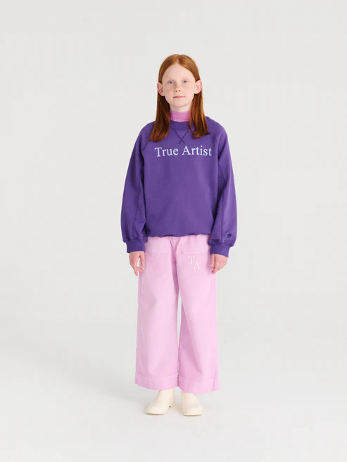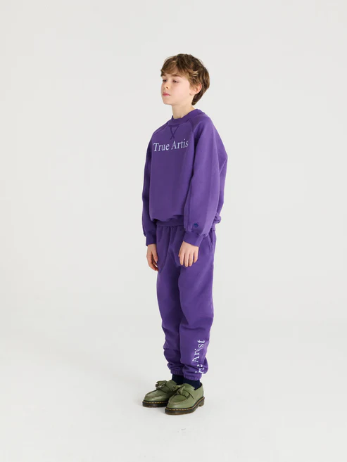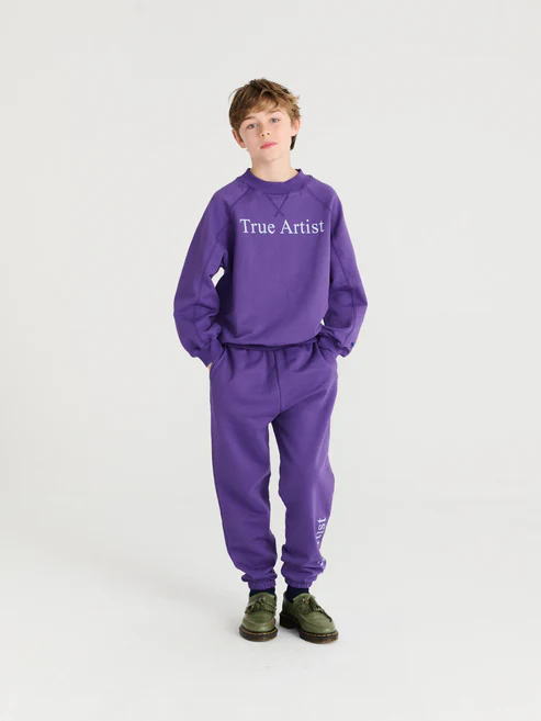 Sweatshirt nº01 in Violet Indigo is made of 98% organic cotton and 2% elastane fleece and has our logo printed on the front. It is designed with raglan sleeves, ribbed at cuffs and bottom, and has our bird logo embroidered on the sleeve. It has a loose fit.
