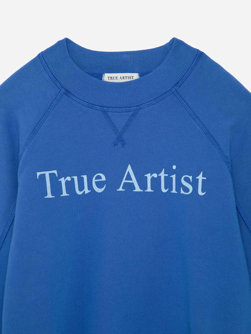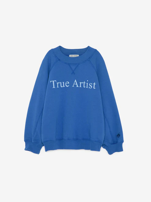 Sweatshirt nº10 in Beaucoup Blue is made of 98% organic cotton and 2% elastane fleece. It features a True Artist embroidery in contrast yellow on the front, and it is designed with round ribbed neck, dropped shoulders, and rib at cuffs and bottom. It has a loose fit.