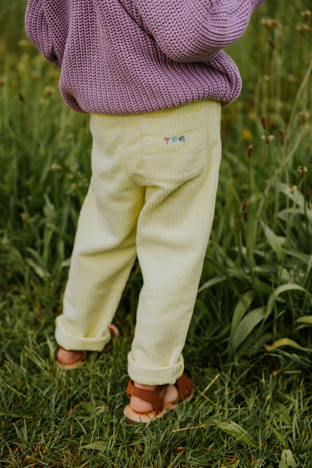 These unisex trousers are made with 1% elastane and 99% Gots and Oekotex certified organic cotton. The soft corduroy fabric has a loose fit but sophisticated style. It has two side pockets and one back pocket with the playful Yuki embroidery. The waistband is elastic and can also be adjusted with a ribbon cord. A real all season’s item for almost every occasion! Yuki offers a minimalistic high-quality collection for those who believe in slow fashion.
